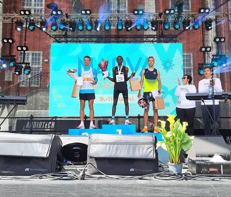 Победителем Нарвского городского забега стал кенийский бегун Соломон Гачока Кагимби со временем 1 час 3 минуты 35 секунд.
