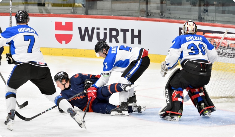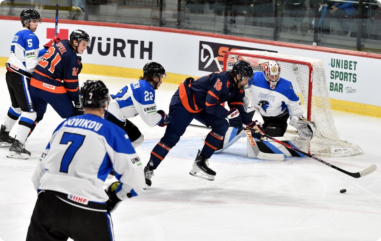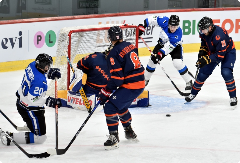 Euroopa Rahvaste Karika turniiri viimases mängus võitis Eesti koondis Hollandi koondist tulemusega 6:0 (1:0, 2:0, 3:0) ja sai lõpuks koduturniiri võitjaks grupis E. Meie meeskonnas lõid kaks väravat Nikita Puzakov ja Rasmus Kiik, ühe värava lõid Robert Rooba ja Erik Pochinok.