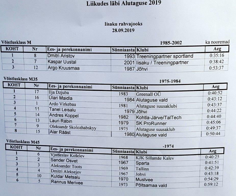 Победителем седьмого по счету Ийзакуского народного бега на дистанции 10 км (17 участников) стал кохтлаярвесец Дмитрий Аристов с финишным временем 35 минут и 16 секунд. Второе место в общем зачете досталось местному парню Каспару Уусталу (38:42) и третье — ветерану из Силламяэ Вячеславу Кошелеву (40:25).