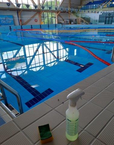 Как уже сообщал наш портал, с 4 по 17 июля в Кохтла-Ярвеском спортивно-оздоровительном центре Wiru идут работы по обслуживанию всех помещений здания. Основные силы на прошлой неделе были отданы уборке главного и детского бассейнов. Сегодня оба бассейна вычищены и заполнены водой. Вернулись в здание теплая вода и центральное отопление, которое было отключено в связи с проводимыми в Ярвеской части города предприятием «ВКГ Сооюс» ремонтных работ тепловых трасс.