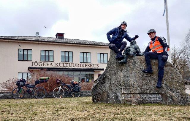 — Jah, — сказал я и подъехал к ней. Как позже выяснилось, это женщину зовут Мерли и она оказалась очень приятным и дружелюбным собеседником. Узнав, что нам нужно доехать до Вильянди, она стала объяснять, что эта действительно дорога в сторону Вильянди, но она проходима только в теплое время года, сейчас там не проехать и что нам нужно ехать через Kolga-Jaani. Показав направление и спросив, не хотим ли мы, чтобы она нас проводила до нужной дороги, я поблагодарил ее за помощь, сказав, что мы справимся сами. Проехав буквально километр-два, я увидел в зеркало, как Мерли нас нагоняет. Ещё пару минут и вот она уже едет рядом со мной. «Ma siiski näitan teile tee». После чего, мы, мило общаясь, проехали ещё 2-3 км. Все это время Мерли рассказывала про жизнь в Пылтсамаа и всячески шутила и подбадривала нас. «Мы велобратство», — сказала она и должны помогать друг другу. Проводив нас до нужного поворота на выезде из Пылтсамаа, я попросил Мерли сфотографироваться вместе и ещё раз поблагодарил ее за помощь.
